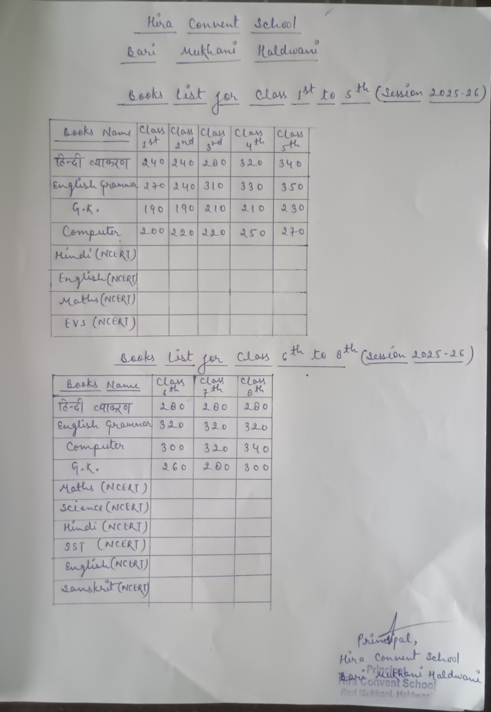 Books list and their rates (Session: 2025-26)